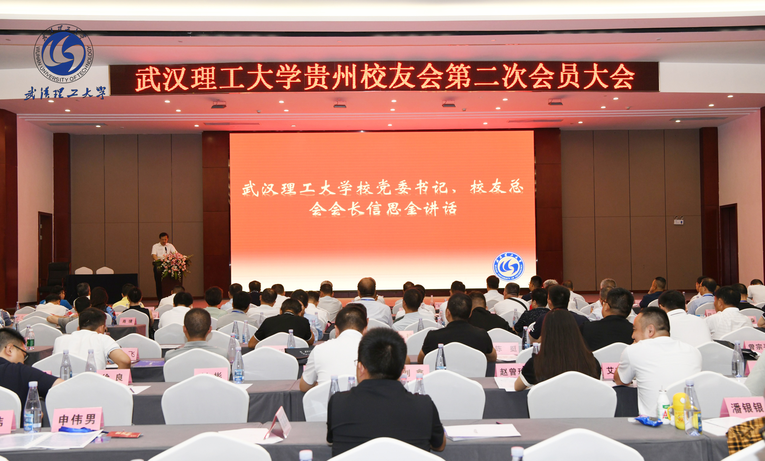 信思金向校友们介绍了学校近年来在高层次人才队伍建设、学科建设、人才培养、科学研究、社会影响力以及校友工作等方面取得的新进展,也向长期关心支持母校发展的贵州各界校友表示感谢!信思金指出,广大贵州校友常思母校培养之恩、不忘故土养育之情,以特有的奋进品质,在贵州这方沃土上奋力拼搏、逐梦前行,创造了令人鼓舞的业绩,极大提升了母校的影响力。在贵州校友的纽带作用下,武汉理工大学与贵州省开展了广泛而深入的合作,有力推动当地经济社会高质量发展。同时希望贵州校友会能够继续服务支持校友、系牢情感纽带和厚植根情文化,各项工作如当前火爆的贵州“村超”一样红红火火、蓬勃发展!