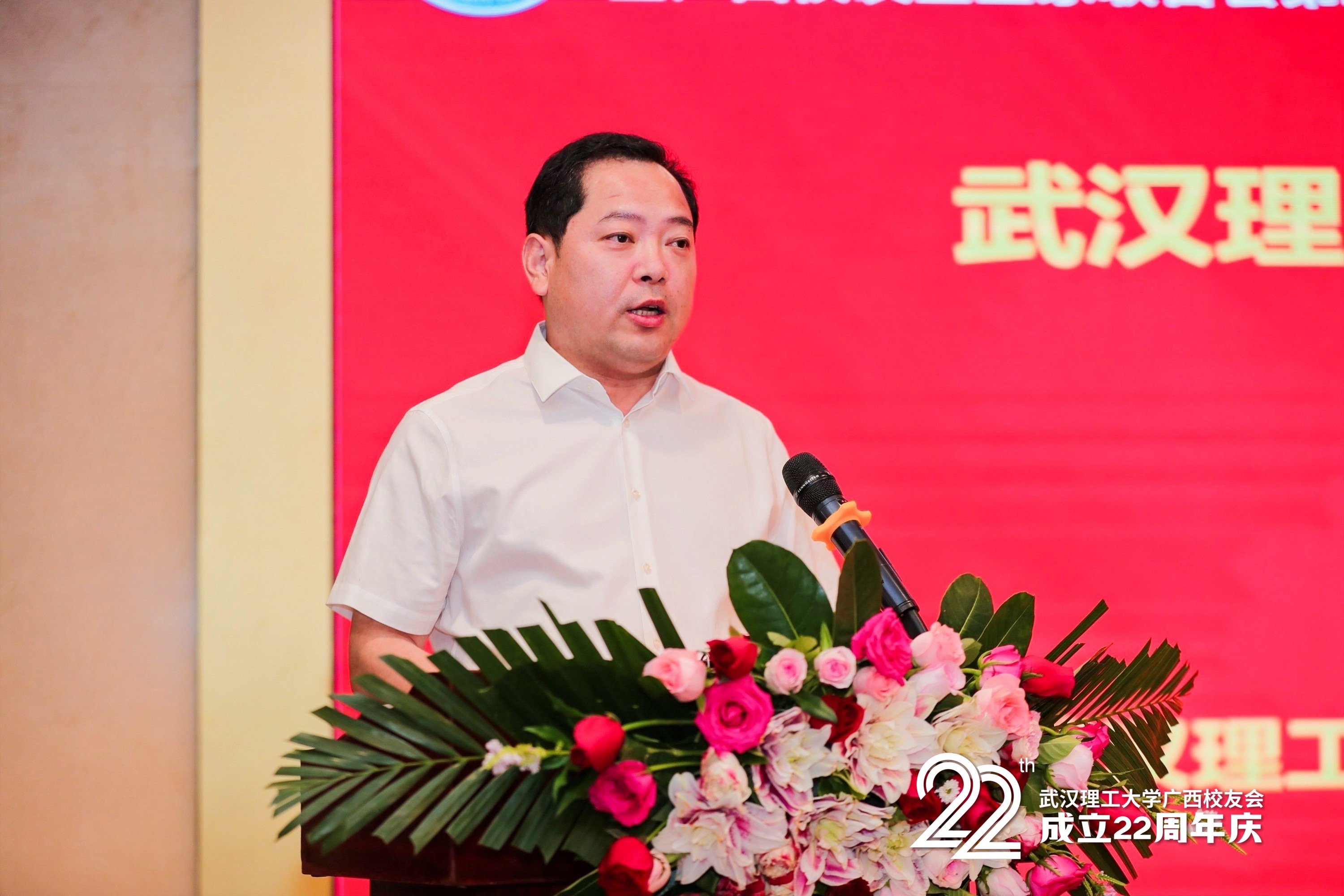 孟芳兵代表学校向武汉理工大学广西校友会成立22周年表示祝贺,向长期关心支持母校发展的广西各界校友表示衷心的感谢!他指出,在学校125年的办学历程中,学校坚持高度重视校友工作,深入践行“全周期全范围全方位”校友工作理念,打造校友与母校情感共同体、荣誉共同体、事业共同体、发展共同体的战略部署,积极搭建平台,促进校友之间的交流与合作。广大广西校友始终以服务地方、服务校友和发展母校为己任,发挥桥梁纽带作用,积极搭建合作平台,创新性地成立了企业家联合会,帮助校友所在行业组建行业协会、创建校企合作人才培训基地,促成了一批科研项目、课题研究的立项。在学校与广西壮族自治区携手进入战略合作的第二个10年中,双方在产业发展、技术创新、人才培养等方面开展了深入合作,实现互利共赢,进一步提升广西壮族自治区科技创新能力和水平,推动广西壮族自治区经济高质量发展。