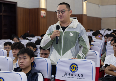 提问环节,师生围绕船舶能源发展与内河航运效益等问题积极交流。“船舶氢、氨等新能源发展加速,我们在校大学生该如何准备以适配行业需求?”“内河航运经济效益提升面临挑战,未来投身该领域需具备哪些能力?”…… 针对同学们的困惑,莫鉴辉结合自身深耕船海领域的实践经验与行业洞察细致作答,同时寄语学弟学妹们,“要紧跟行业转型方向,在专业学习中找准重点,既要积累能源技术、航运经济相关知识,也要注重实践能力培养,切实为行业发展助力。”