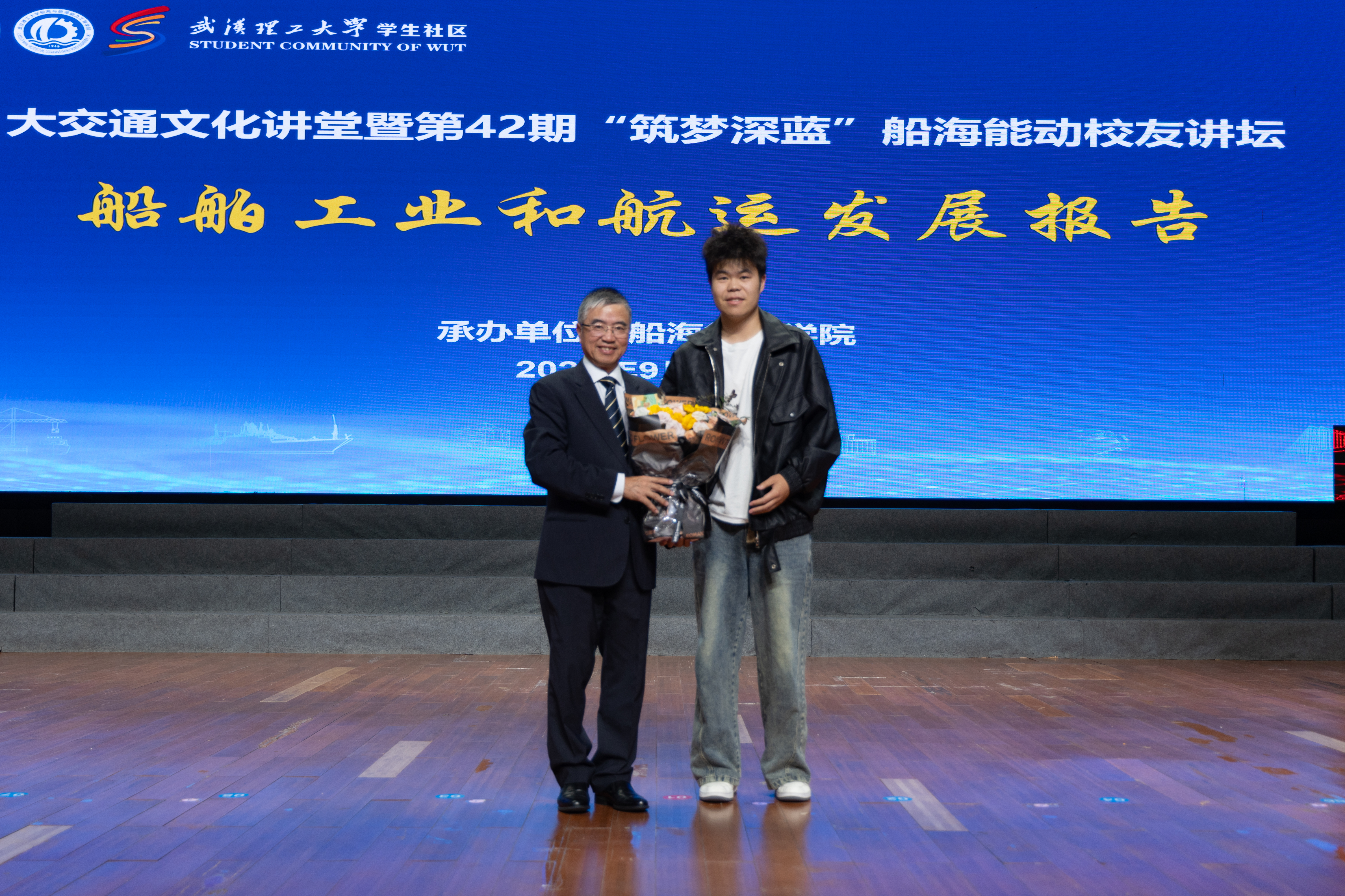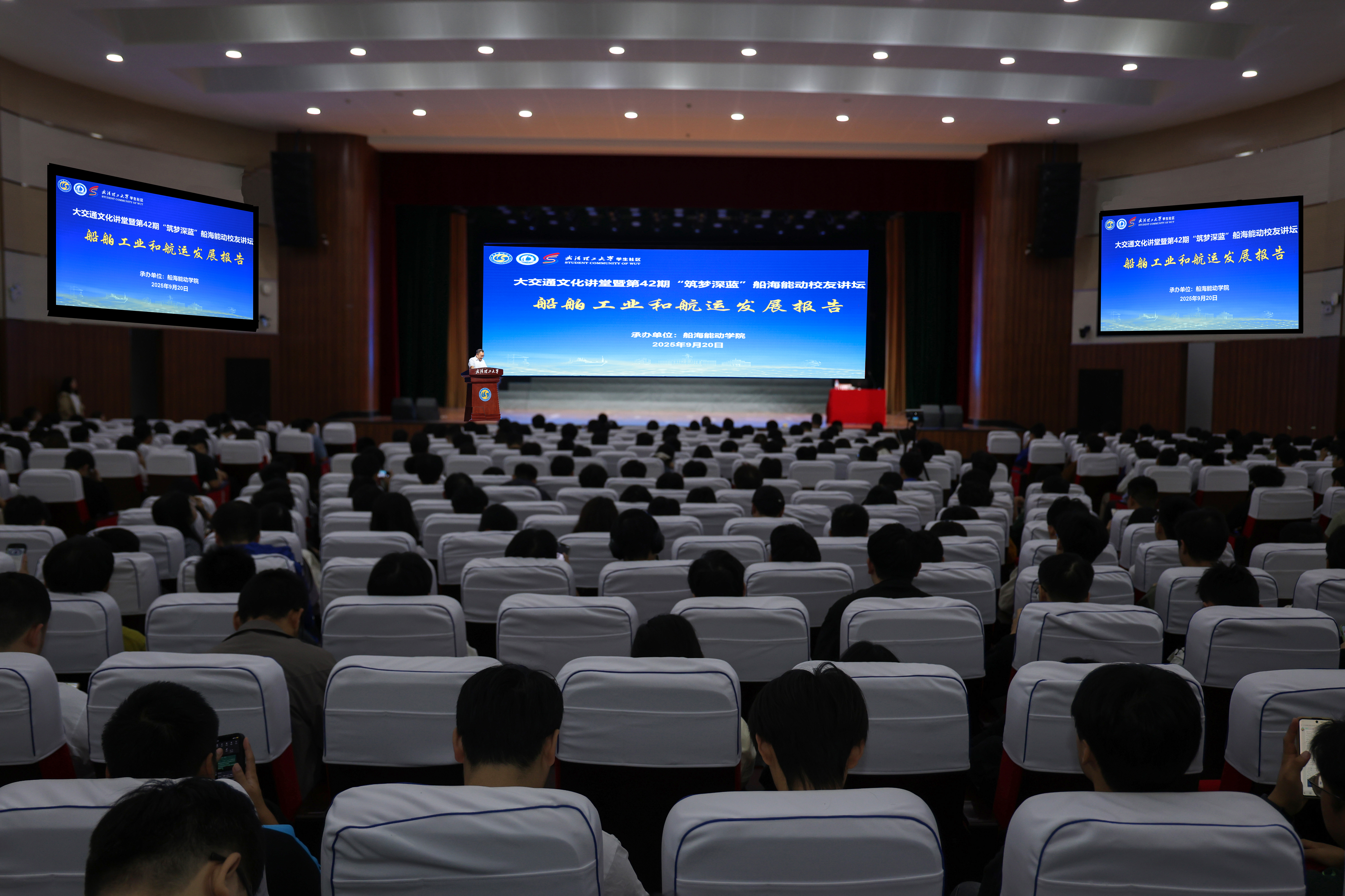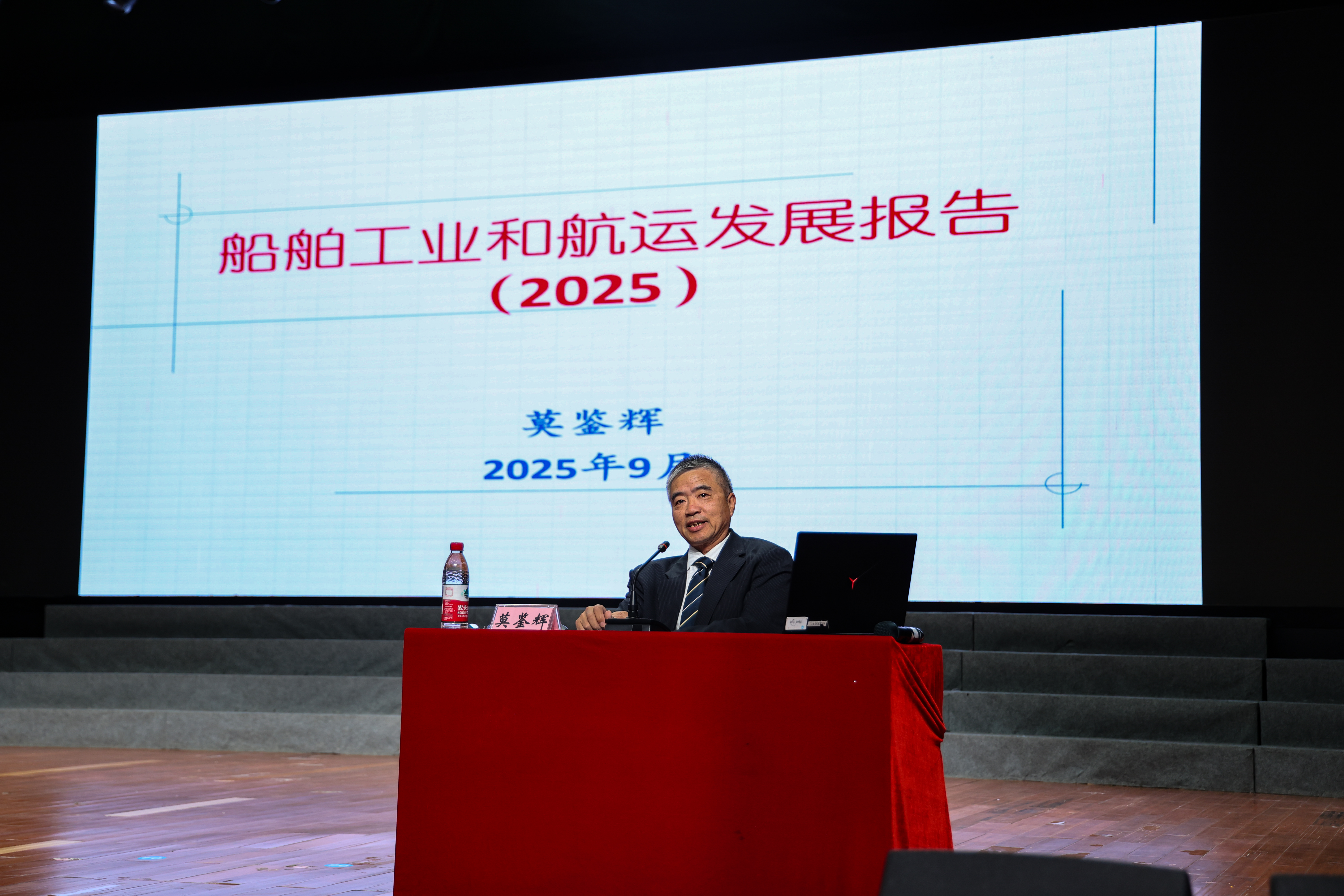 莫鉴辉校友以“船舶工业与航运发展”为题作报告,从船舶工业的战略地位、多元构成、要素现状与拆船业绿色转型,到航运的行业定义、分类构成、港口布局与服务体系,再到国家战略背景下两大领域的发展机遇,系统梳理了船舶与航运行业的全景图景。莫鉴辉提到, “船舶工业是海洋强国的基石,航运是连接全球的纽带,二者协同方能驱动海洋经济高质量发展”,并勉励青年学子要夯实专业基础、把握绿色智能发展方向,以实干担当投身交通强国与海洋强国建设。