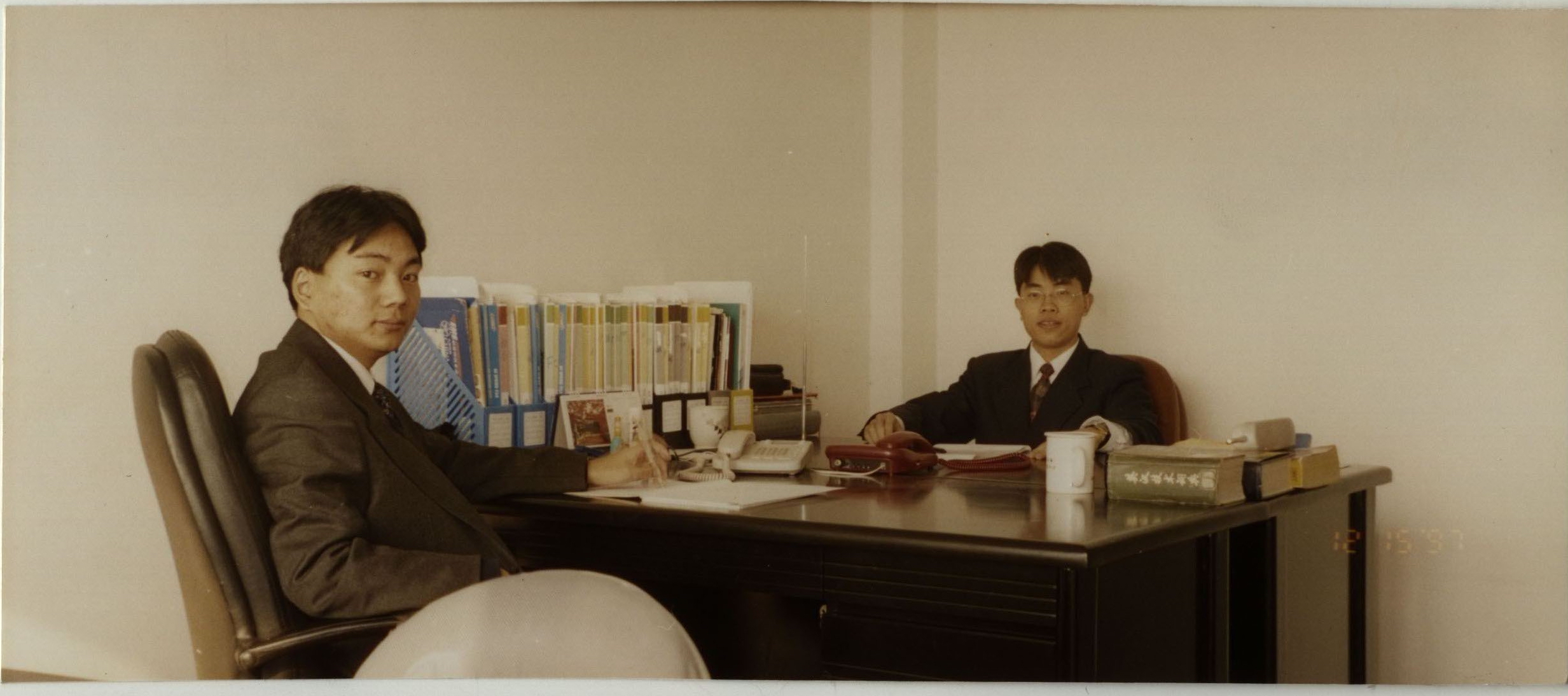 1997年公司成立时的张祖秋(左)与陈洪凌(右)