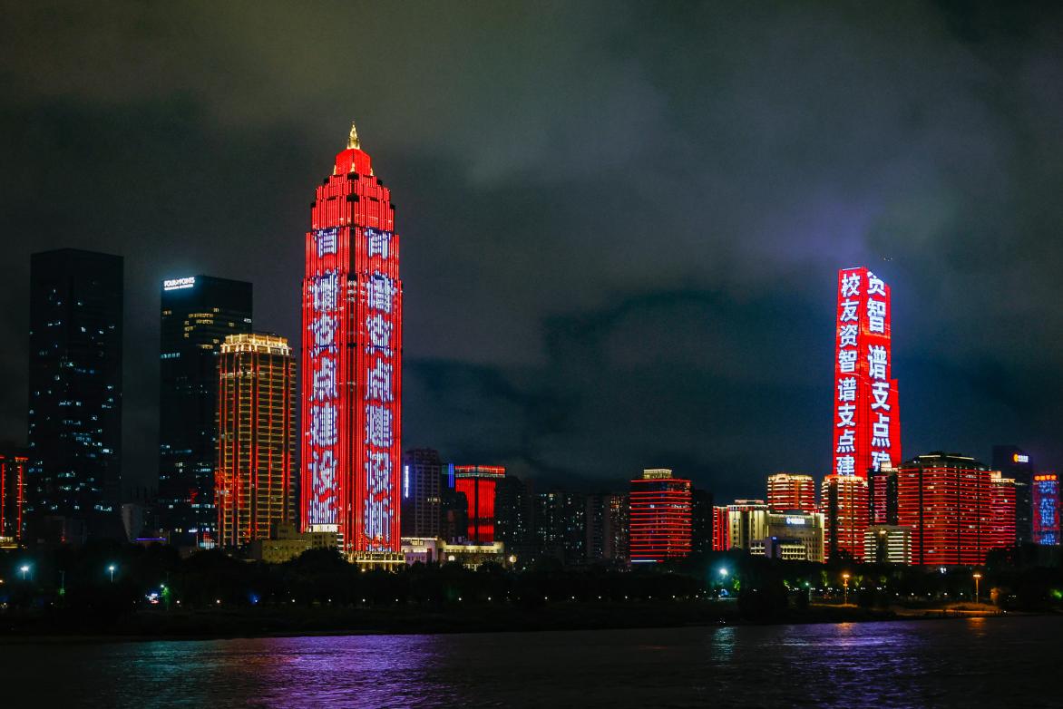 本次活动由学校和武汉市经开区具体承办,经开区专门出资为学校和返校校友打造专属灯光秀。10月17日晚,校友及行业企业家代表们相聚长江“古琴号”考察船,夜话长江,共叙情谊、共谋发展,共赏点亮武汉理工之夜的江城灯光秀。
