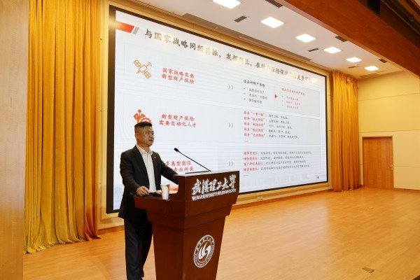 10月18日下午,中国平安保险(集团)股份有限公司党委委员、中国平安财产保险股份有限公司党委书记、董事长兼首席执行官龙泉校友应邀返校,于马房山校区会议中心201为师生带来题为“积极、求变,拼搏共赢”的前沿分享。中国平安财产保险股份有限公司湖北分公司党委书记、总经理王文进,中国平安财产保险股份有限公司党委办公室主任胡玉成以及自动化学院200余名在校生参加讲座,自动化学院王文辉书记主持讲座。