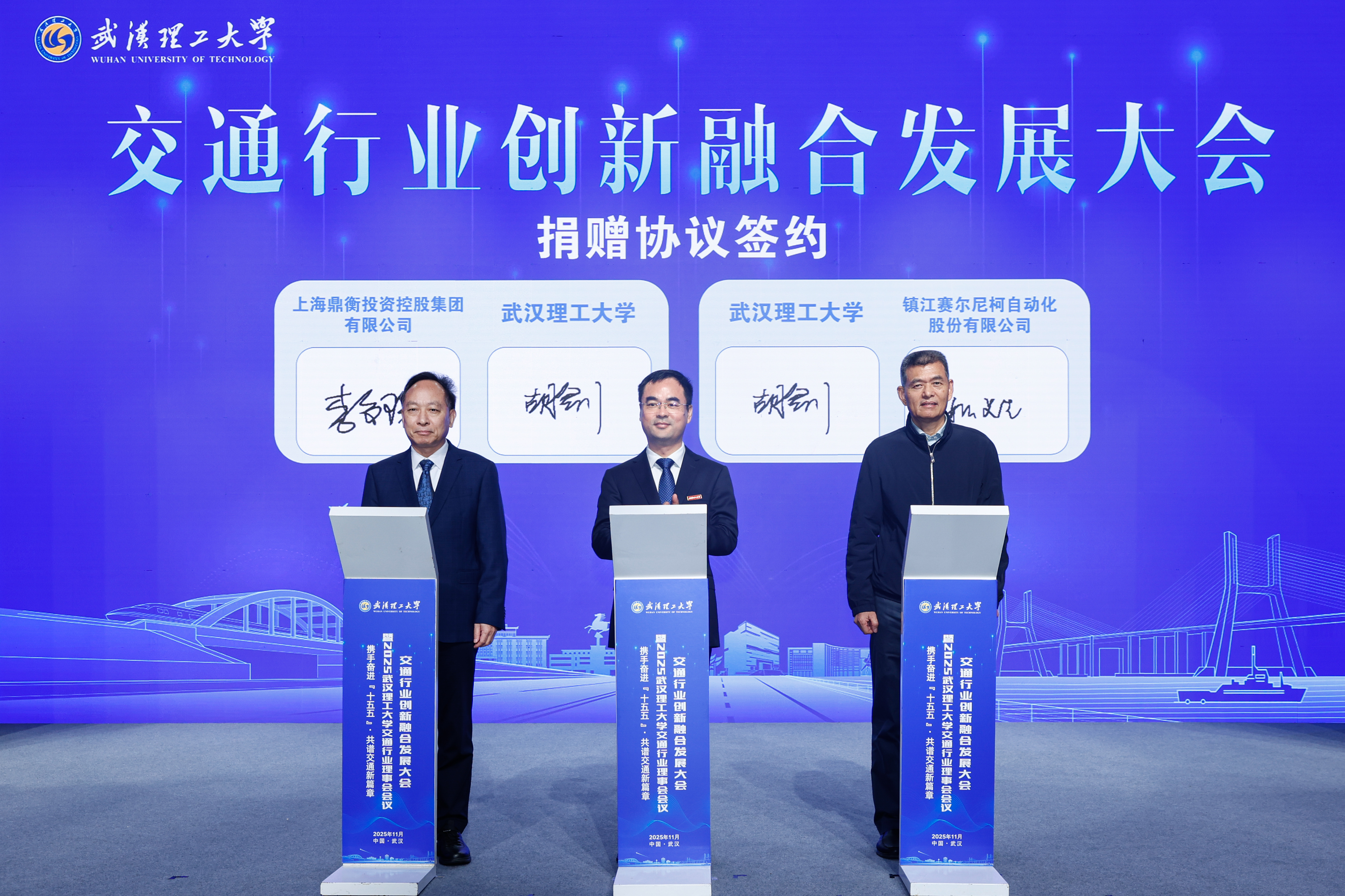 会上,学校与中交集团签订战略合作协议,双方将围绕人才培养、平台建设、科技攻关、科研项目申报、成果转化等方面开展全方位合作。与中国能建华东建设投资有限公司、宁德时代电船科技有限公司、顺丰泰森控股集团股份有限公司签订校企合作协议,重点围绕新能源船舶标准船型、三电系统、人工智能+交能融合大数据平台、技术创新中心、人才联合培养等开展合作。与上海鼎衡航运科技有限公司、校友代表签订校企捐赠协议,支持学校人才培养与校园建设。