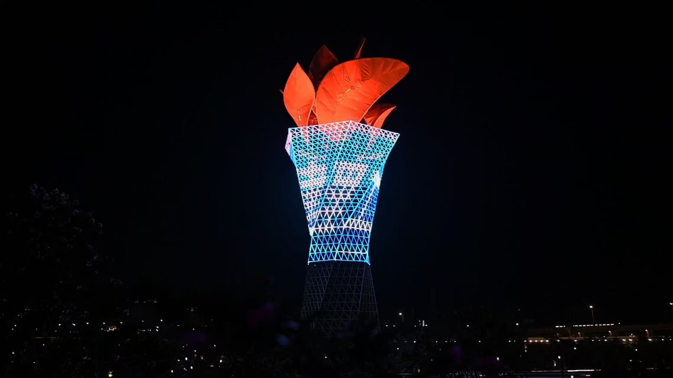 12月12日晚,在三亚崖州湾三角梅科博园,“聚武汉理工建材建工行业智慧 助自贸港高标准建设”主题灯光秀吸引参会嘉宾驻足欣赏。
