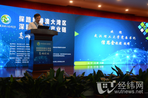 新闻经纬讯 8月16日-17日,校党委书记信思金,校长张清杰,校党委副书记赵经,澳大利亚工程院院士程一兵,校办、余区管委会、社发处、新材所、光纤中心负责人以及10位教授一行赴深圳武汉理工大研究院,参加“探路粤港澳大湾区·深耕新材料产业链”高峰论坛。深圳市宝安区副区长高志远,深圳市宝安产业投资集团董事长李泉生、总经理徐曦,深圳市科技创新委员会材料与能源处副处长傅岳敏,深圳市新材料行业协会会长陈寿,凯盛集团国家“千人计划”专家陈颉,以及来自深圳市企业界的代表近200人参加了论坛。