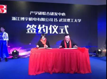 为加强校企合作,浙江博宇机电有限公司与武汉理工大学签订了共建“物料输送设备&智能制造研发中心”、共建“人才联合培养基地”和设立“浙江博宇杯IM创新大赛奖金”协议。