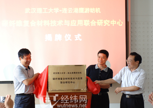 9月8日上午,“武汉理工大学——连云港鹰游纺机碳纤维复合材料技术与应用联合研究中心”揭牌仪式在机电大楼三楼会议室举行。校长张清杰,数字制造湖北省重点实验室主任周祖德教授,铸造77级校友、连云港鹰游纺织有限公司董事长张国良出席揭牌仪式并讲话。揭牌仪式由机电工程学院院长胡业发主持。