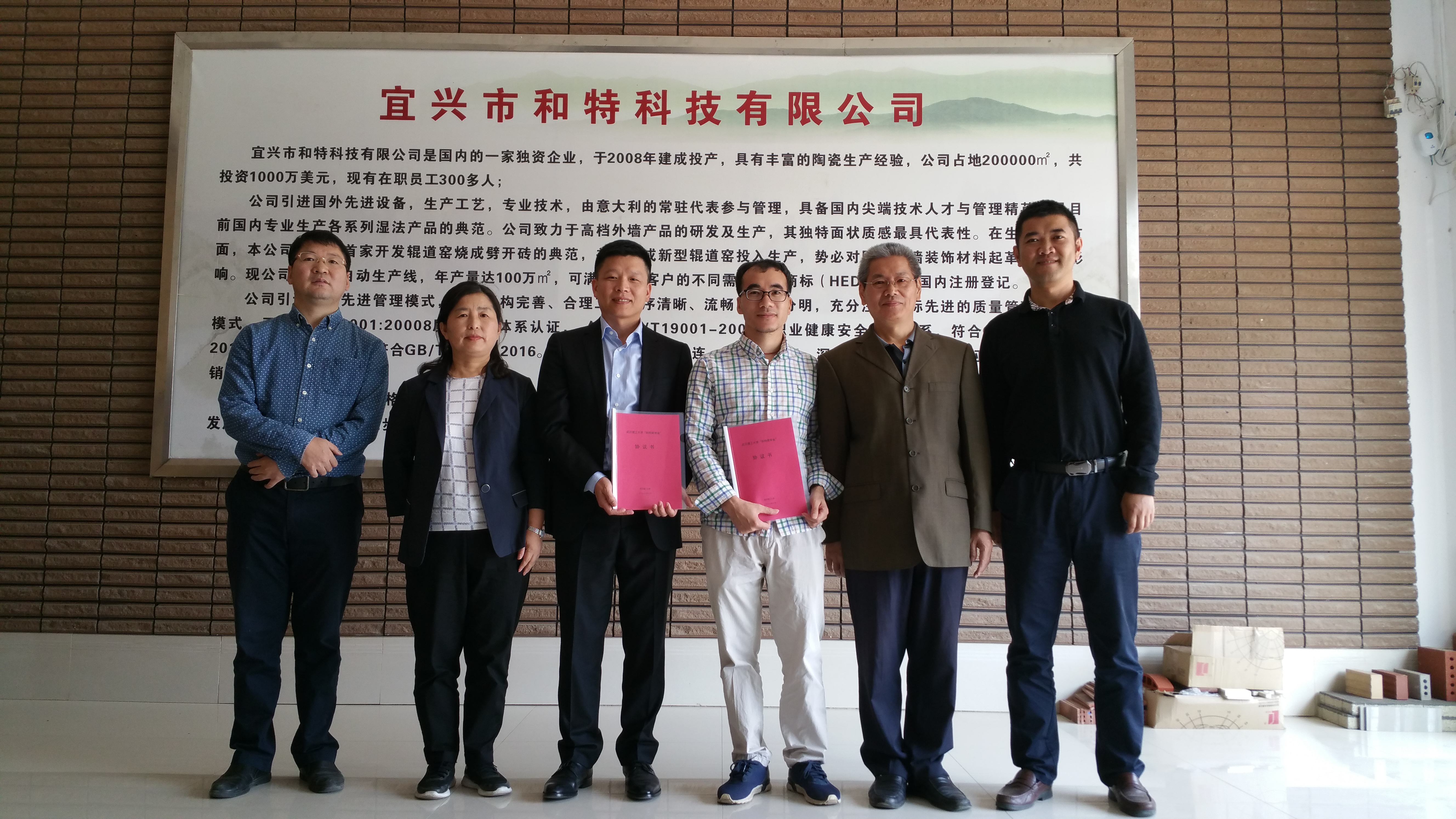 10月11日上午,武汉理工大学“和特奖学金”协议签字仪式在江苏宜兴举行。卢少平副处长、体育部李宇光书记、材料学院石虎副书记、顾少轩教授、刘保顺研究员一行5人出席协议签字。石虎副书记代表学校与江苏宜兴和