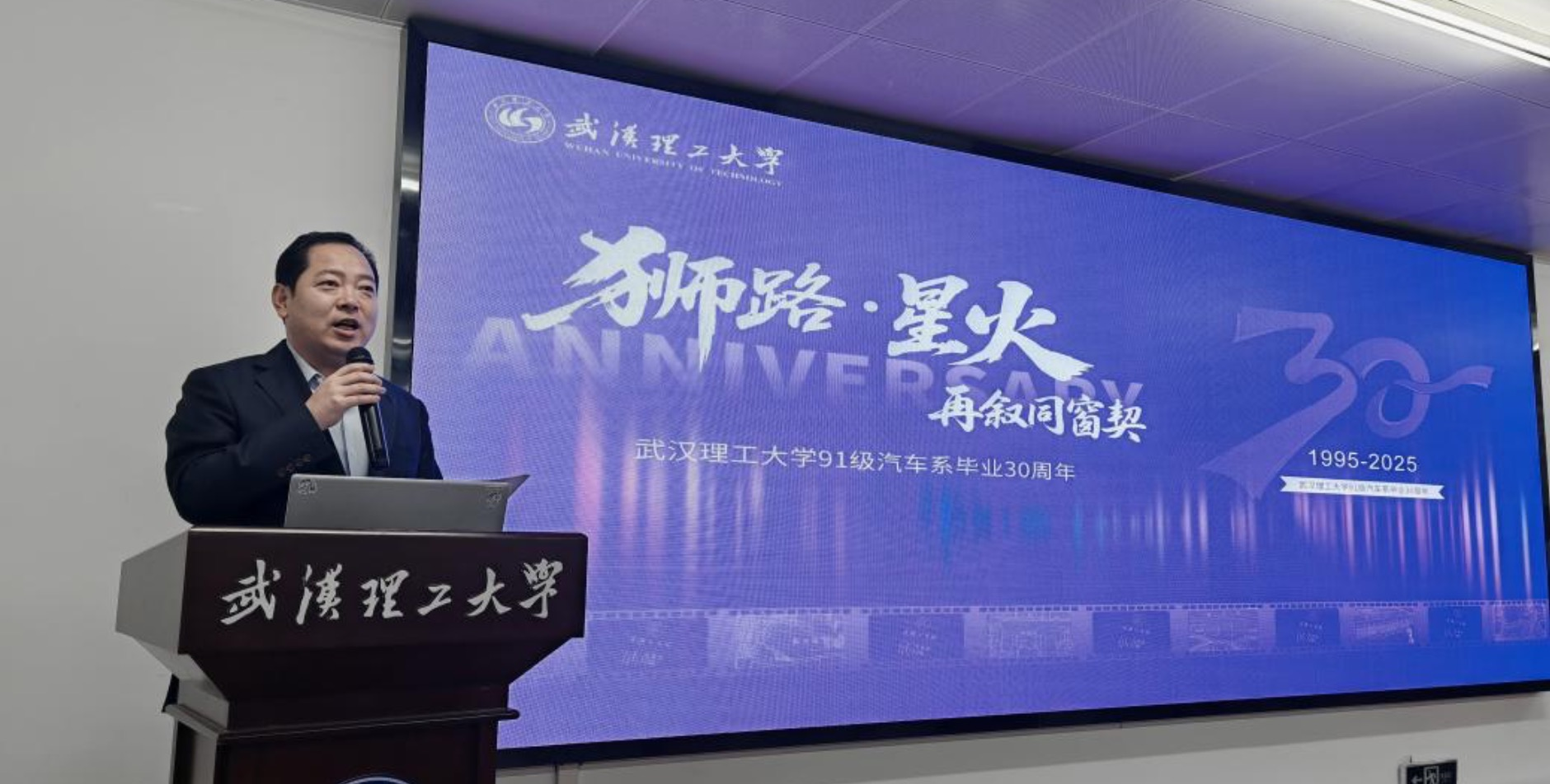 金秋十月,硕果盈枝。10月19日上午,武汉理工大学东院就业指导中心延长石油报告厅内暖意融融,汽车工程学院1991级校友们从全国各地奔赴而来,以“狮路星火・再叙同窗契”为活动主题,共同庆祝毕业三十周年,重温青春岁月,共话发展情谊。学校党委书记孟芳兵,校长助理胡剑,社会合作处处长赵衍民,汽车学院院长颜伏伍、党委书记刘耀胜、副院长王东武、副院长韩星会、副院长汪怡平、副院长胡志力、党委副书记蔡春以及时任辅导员等领导老师出席,与校友们共聚一堂。活动伊始,学校党委书记孟芳兵代表学校致欢迎辞,向校友们的到来表示热烈欢迎
